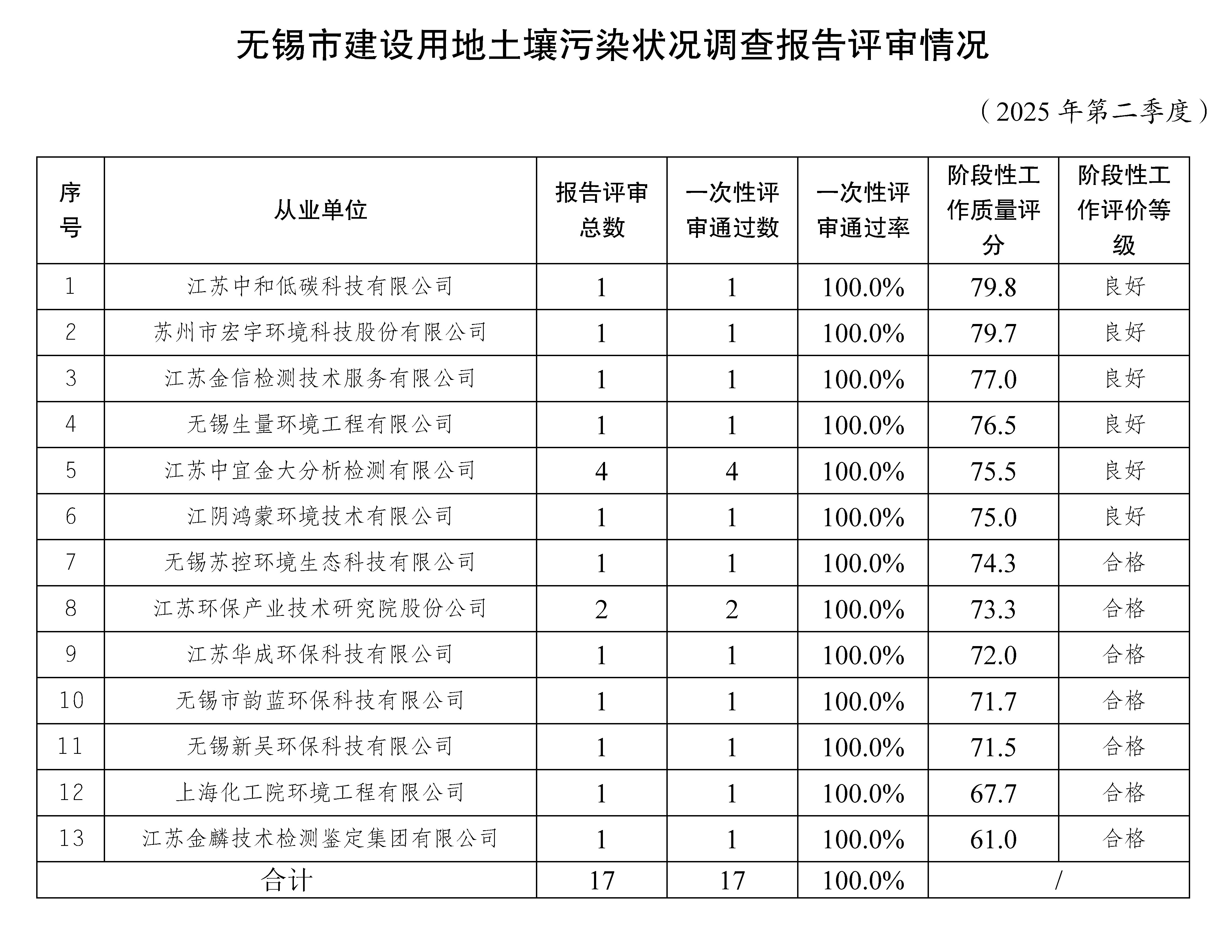 | 內(nèi)容概述 | 無錫市2025年第二季度建設(shè)用地土壤污染狀況調(diào)查報告評審情況 | ||||