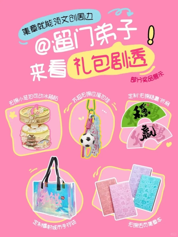 (獎(jiǎng)品豐富多彩,有蘇超無(wú)錫應(yīng)援包掛、小籠包可動(dòng)冰箱貼、定制“無(wú)錫穩(wěn)贏”折扇等……具體獎(jiǎng)品樣式,請(qǐng)關(guān)注@無(wú)錫文旅小紅書官方賬號(hào)筆記)
