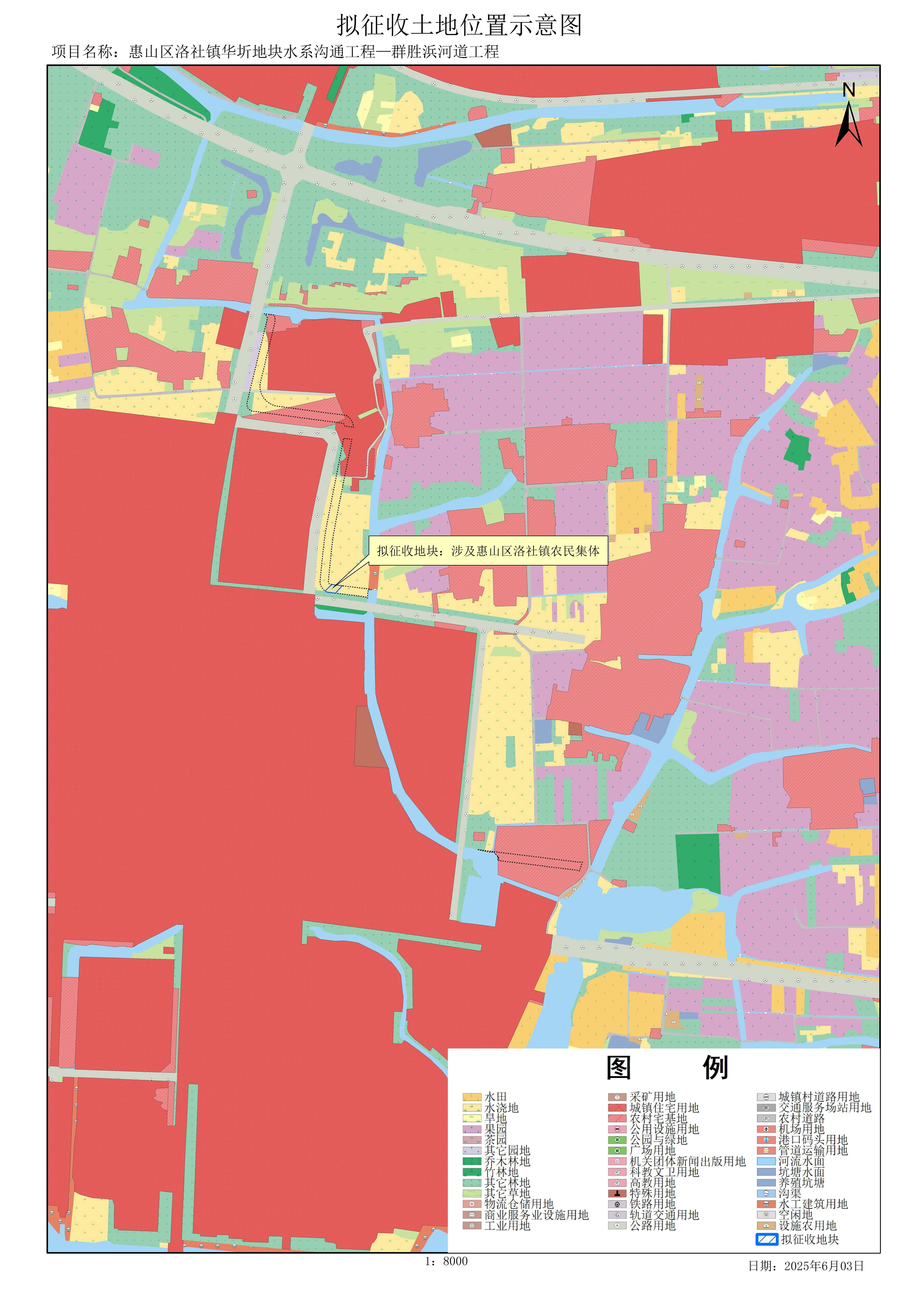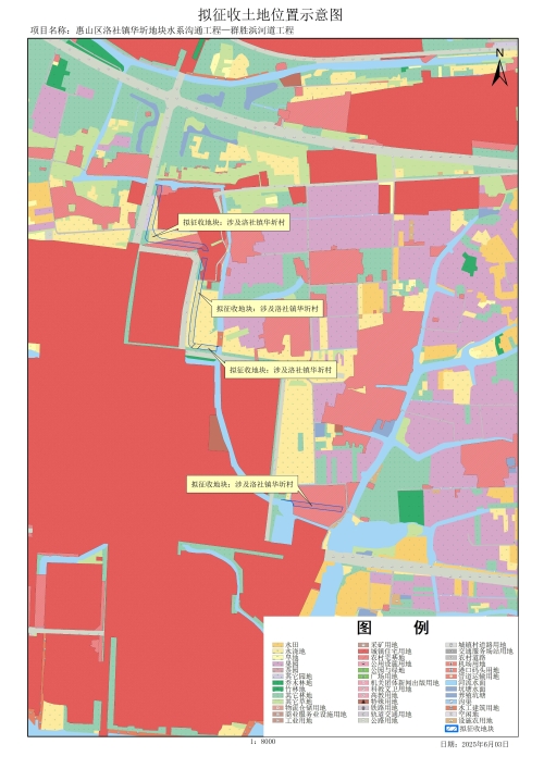 由政府組織實施的能源、交通、水利、通信、郵政等基礎設施建設需要用地,項目名稱為惠山區洛社鎮華圻地塊水系溝通工程—群勝浜河道工程。