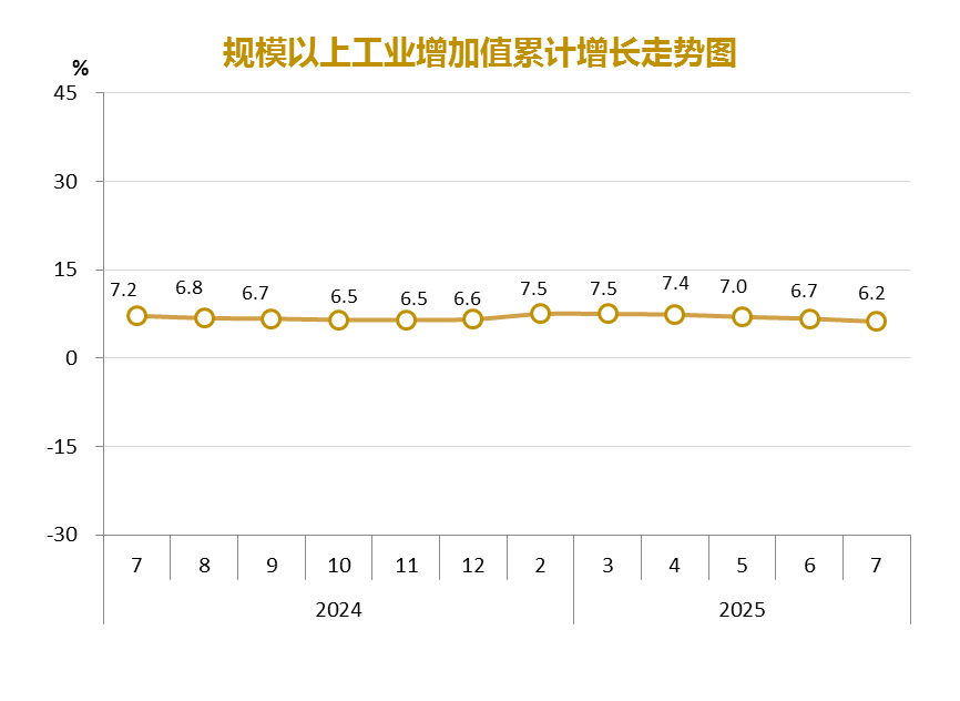 | 內容概述 | 2025年1-7月規模以上工業增加值增長6.2% | ||||
