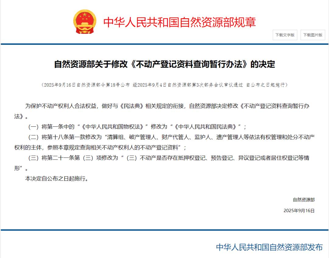 (根據(jù)2019年7月16日自然資源部第2次部務(wù)會(huì)《自然資源部關(guān)于廢止和修改的第一批部門規(guī)章的決定》修正 根據(jù)2024年5月9日自然資源部第2次部務(wù)會(huì)《自然資源部關(guān)于第六批修改的部門規(guī)章的決定》第二次修正 根據(jù)2025年9月4日自然資源部第3次部務(wù)會(huì)《自然資源部關(guān)于修改不動(dòng)產(chǎn)登記資料查詢暫行辦法的決定》第三次修正)