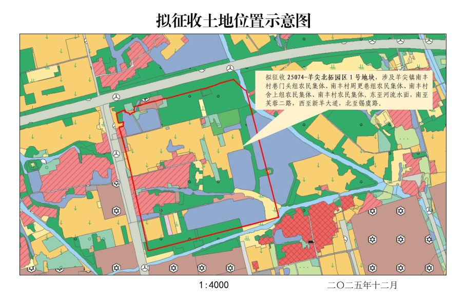 本次擬征收土地位于羊尖鎮南豐村巷門頭組農民集體、南豐村周更巷組農民集體、南豐村舍上組農民集體、南豐村農民集體范圍內。擬征收土地位置詳見附圖。