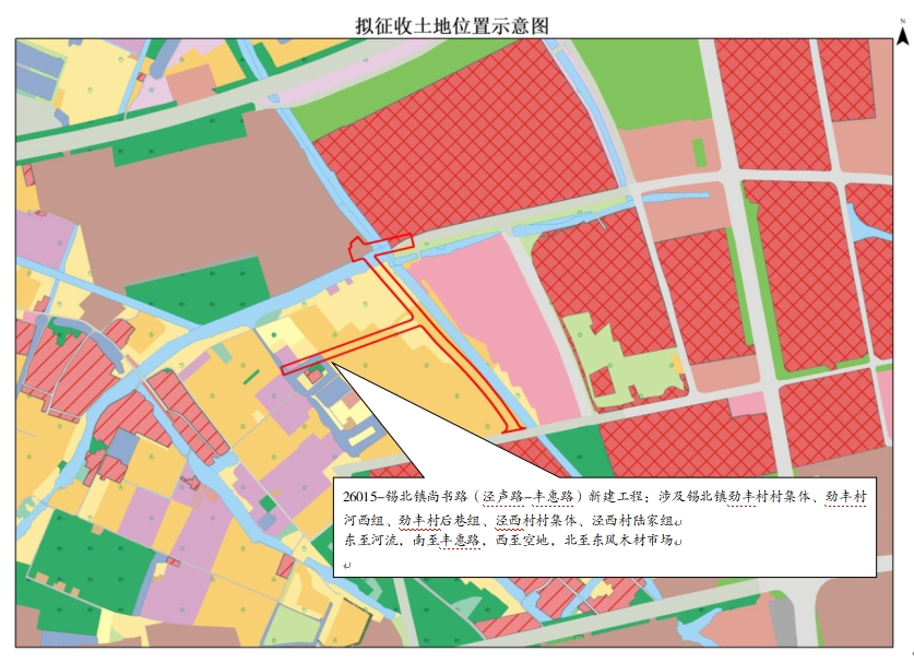 本次擬征收土地位于錫北鎮(zhèn)勁豐村村集體、勁豐村河西組、勁豐村后巷組、涇西村村集體、涇西村陸家組集體范圍內(nèi)。擬征收土地位置詳見附圖。