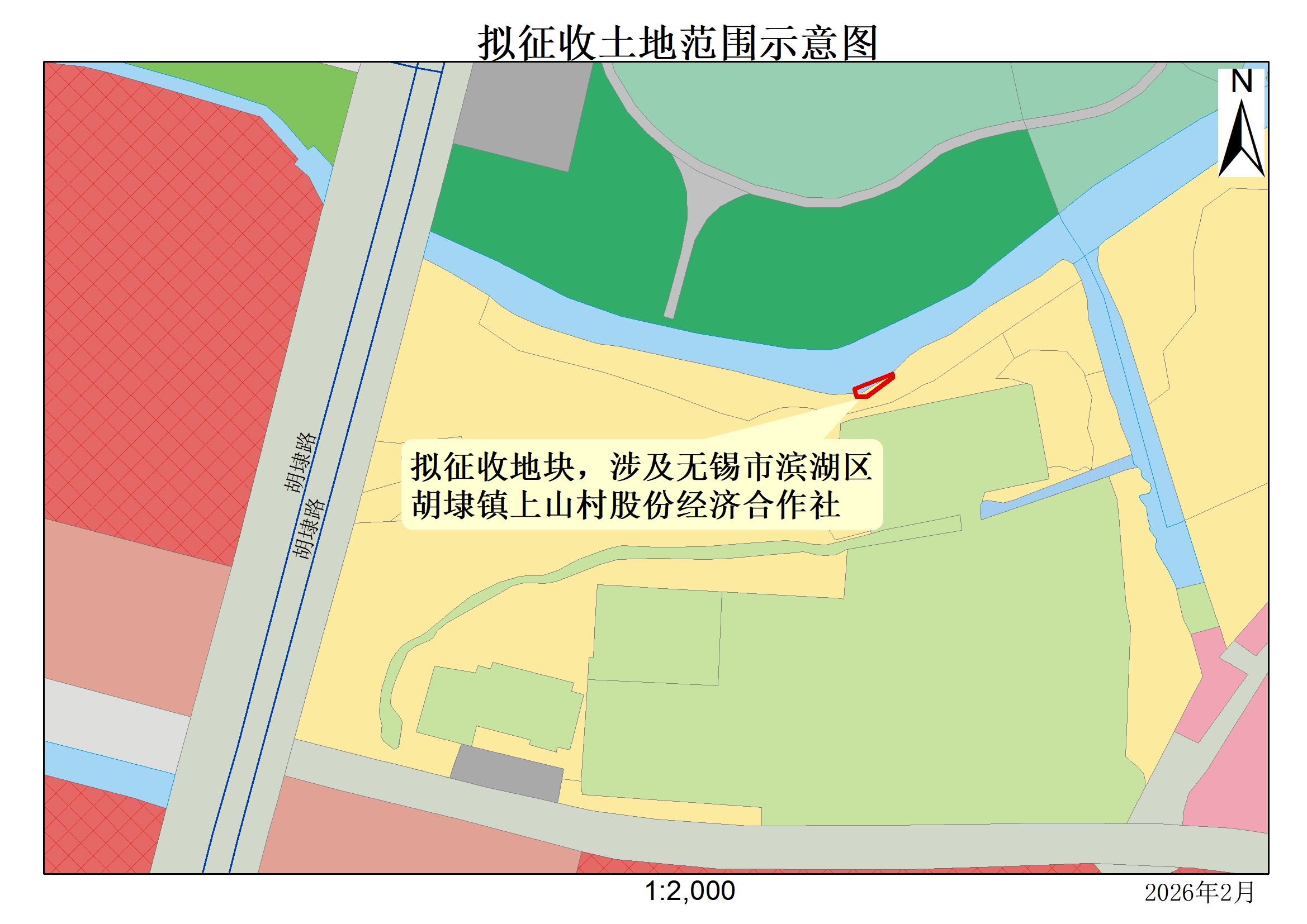 本次擬征收地塊位于無錫市濱湖區胡埭鎮上山村股份經濟合作社范圍內。擬征收土地位置詳見附圖。