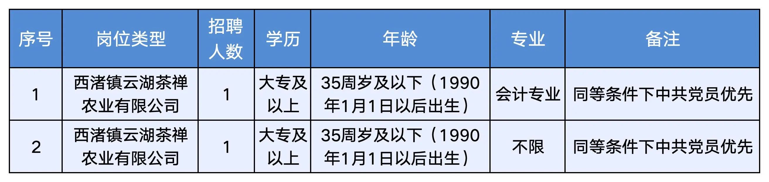 5、具有崗位要求的其他條件(詳見下方《2025年西渚鎮(zhèn)公開招聘云湖茶禪農(nóng)業(yè)有限公司工作人員崗位簡介表》)。